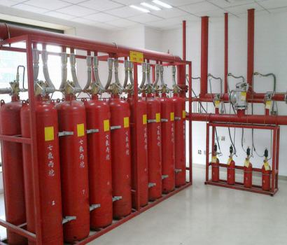 金隅红树林 化学品仓库气体灭火施工案例照片,三个保护区,药剂共计1300L。
